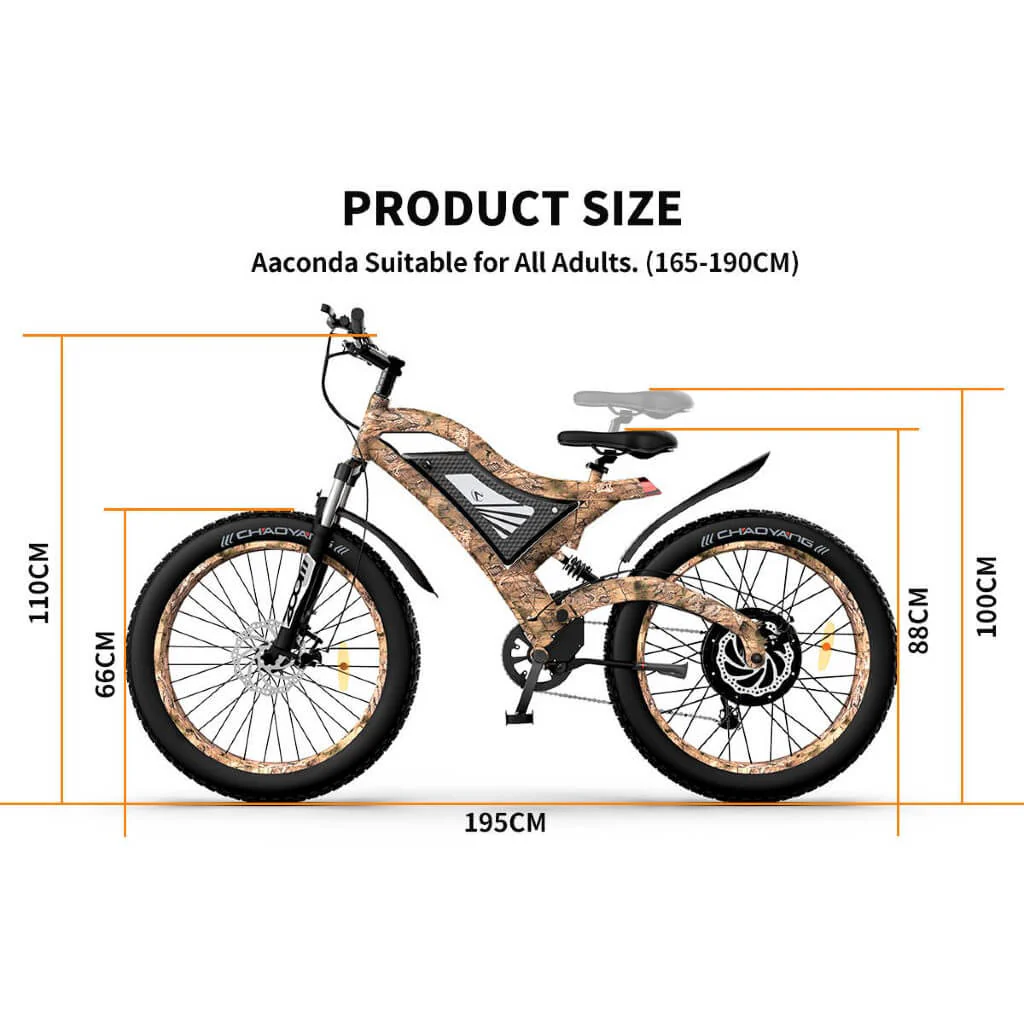 Aostirmotor S18 All Terrain 1500W 48V Full Suspension Mountain Electric Bike – Snakeskin Features: