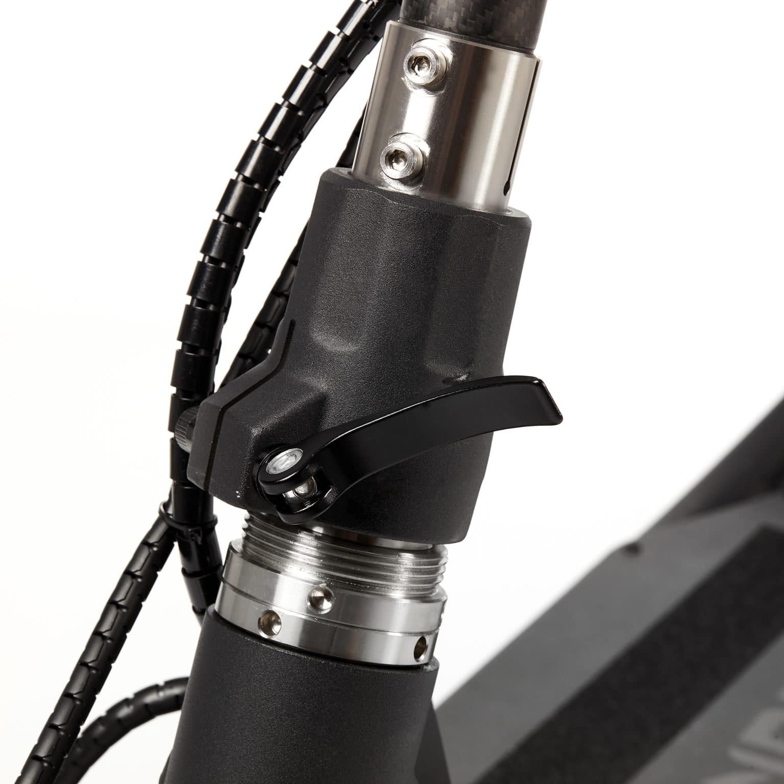 Its tubular aluminum frame, carbon steering column and side lighting guarantee safety, robustness and style in all circumstances. A high-performance and innovative Burn-E3 Max electric scooter: