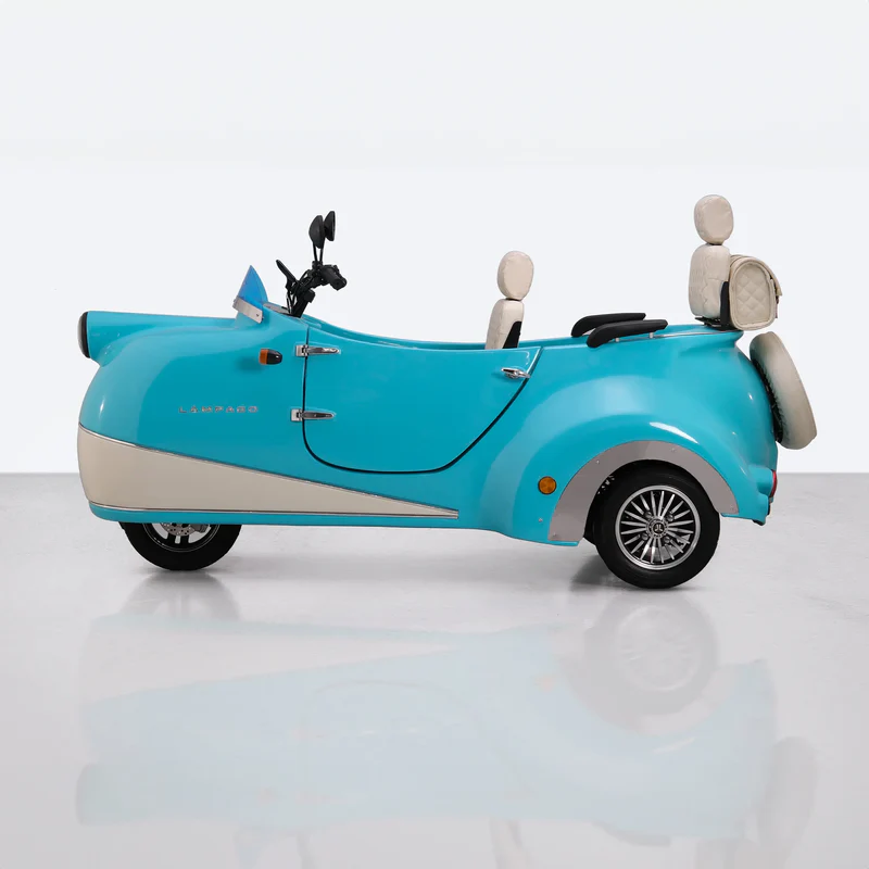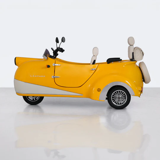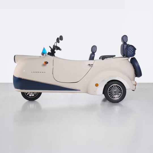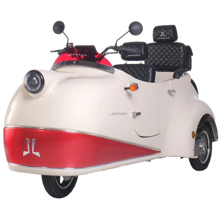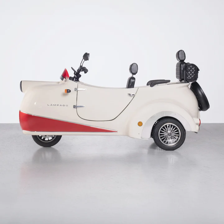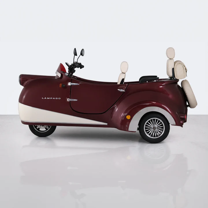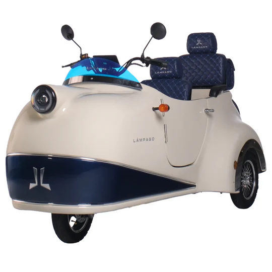 Meet Lámpago, an eco-friendly electric vehicle designed for urban use that offers a comfortable driving experience, transforming every journey into unforgettable memories. This modern trike with a vintage design touch uses environmentally friendly energy sources to minimize pollution while you travel.
