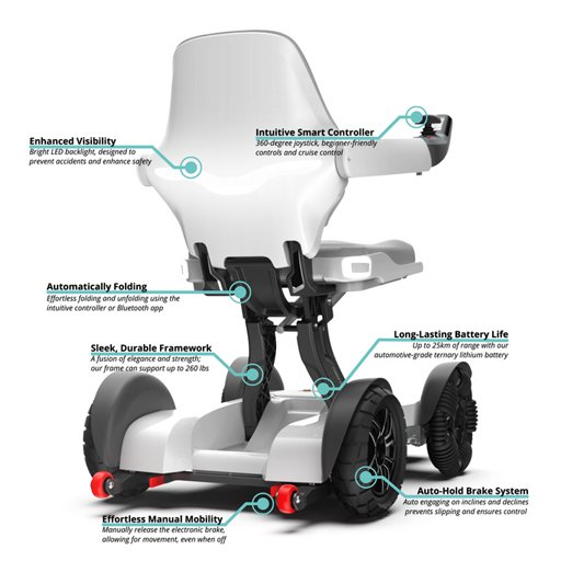 The X40 model boasts a futuristic design that’s hard to miss. Its sleek appearance and multitude of features are a game-changer in the mobility industry. This innovative device combines the best of both worlds: the functionality of a traditional power chair and the convenience of a scooter, creating a whole new category of mobility device.