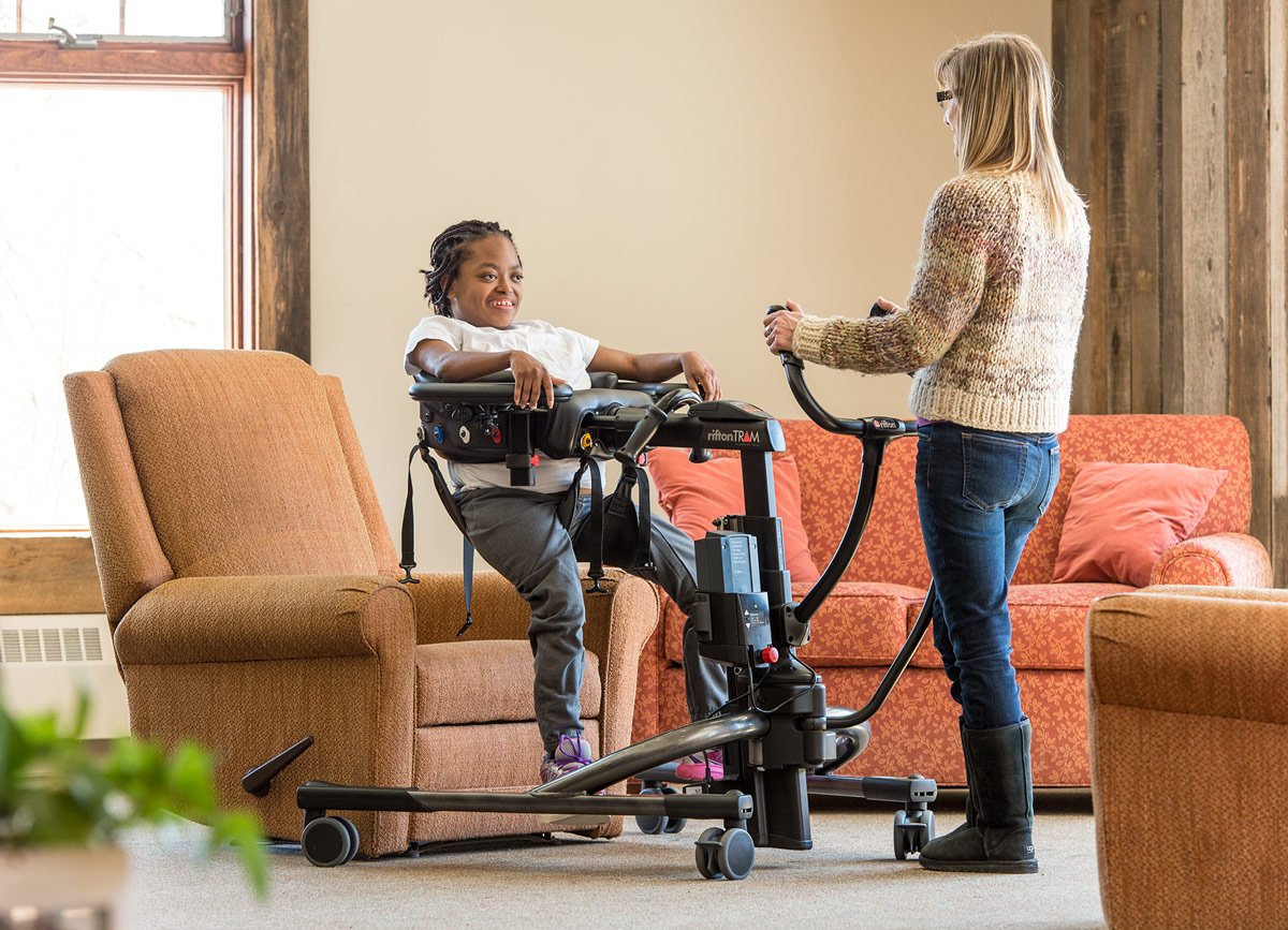 The Tram lift is a transfer and mobility device designed to deliver three powerful functions in one compact unit: gait training, sit-to-stand transfers and seated transfers.