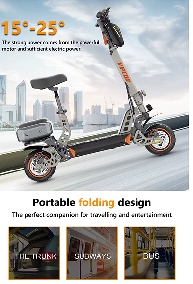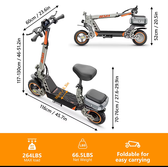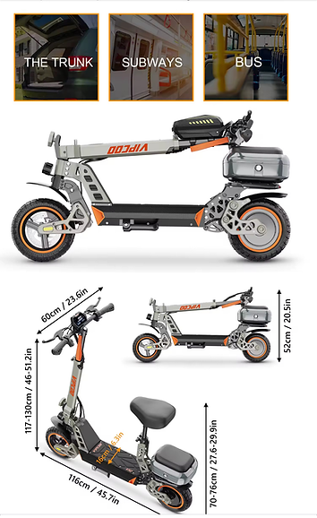 The VIPCOO VS2 Electric Scooter with Seat is a high-performance e-scooter designed for both daily commuting and recreational use. It features a powerful 700W hub motor, allowing riders to reach speeds up to 28 mph and handle inclines between 15°-25° effortlessly.