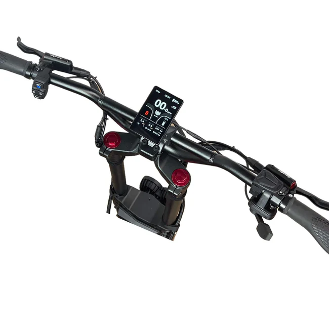 On paved road, this high-performance scooter delivers insane acceleration and a top speed of 50mph (road tires recommended for high-speed road use). The huge 60V 35Ah LG or Samsung battery can last for up to 60 miles under optimal conditions, but also delivers sufficient range for those thrilling high speed rides. Full hydraulic brakes in combination with the optionally enabled ABS system provide for safe and accurate braking power to tame this beast.